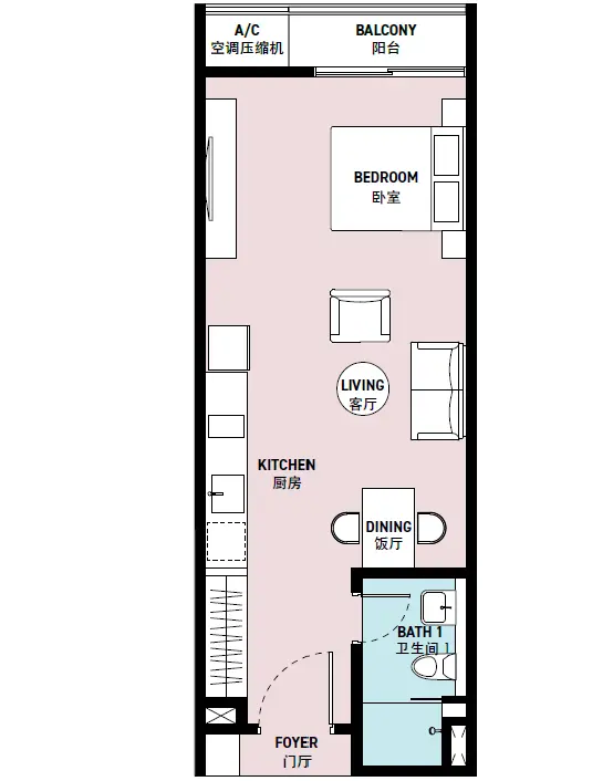 Comes with kitchen cabinet, air-conditioning, wardrobe, and essential fittings for immediate move-in.