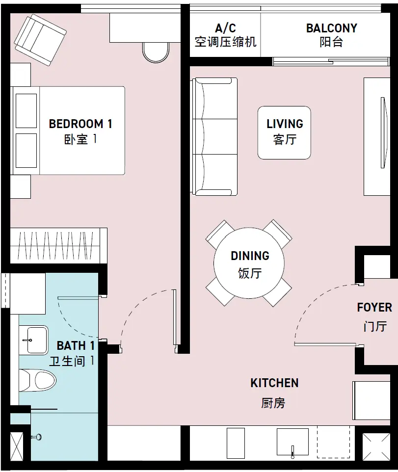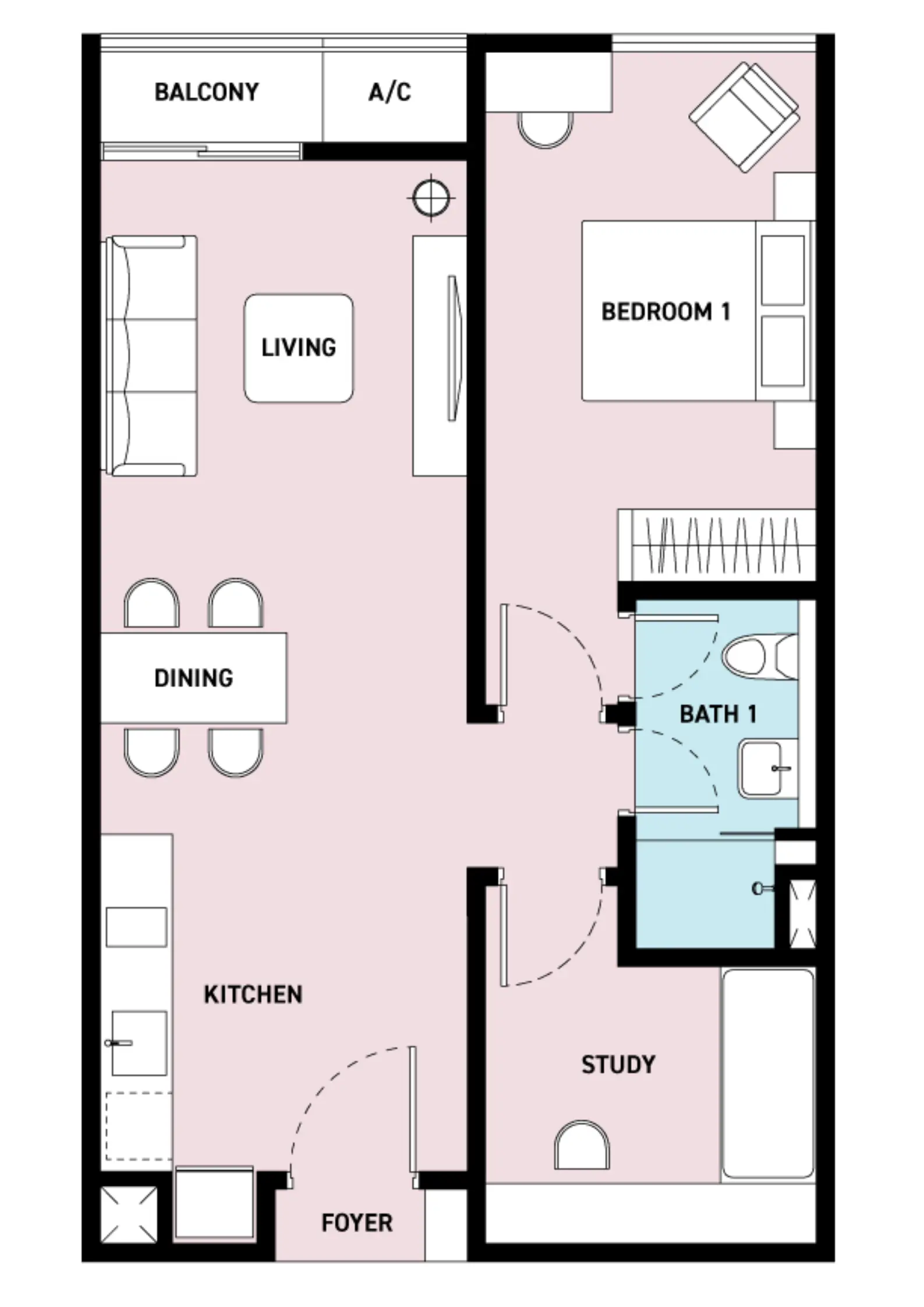 Type C | 657 sq.ft. | 1 Bedroom + Study