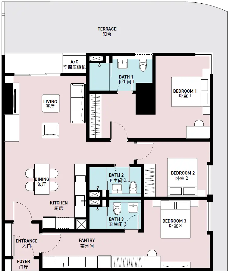 Type E | 861 sq.ft. | Dual Key (2 Bedrooms)